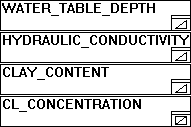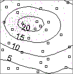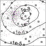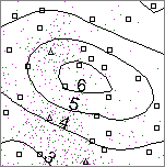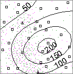 By clicking on the "kriging window" icon - bottom right of each of the management window's items - the user opens a so-called "kriging window". A detailed examination of these windows follows later in this example (at the discussion of the results of the aggregation). The kriging windows provide a two-dimensional display of the input data, shown in the following graphics.